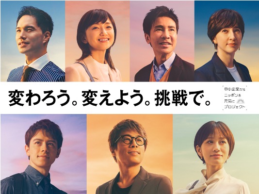 『中小企業からニッポンを元気にプロジェクト』は第 3 期目が始動し、新たなプロジェクトビジョン「変わろう。変えよう。挑 戦で。」を掲げ、新アンバサダーとして歌手、俳優、アナウンサーなど各々のジャンルでトップランナーとしての地位を確立し、 周囲を牽引してニッポンを元気にされている、郷ひろみさん、永作博美さん、市原隼人さん、滝川クリステルさんをお迎えしました。