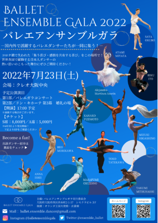 本舞台公演は、海外で活躍中のバレエダンサーや日本のバレエ団やフリーのダンサーたちが共演するバレエガラコンサートです。アンサンブルはフランス語で「共に、統一、調和」を意味します。ダンサー・共演者が集い、観客の皆さまと共に素晴らしい時間を共有できる場であるように、という思いが込められています。コロナ禍で失われた「集う喜び・感情を共有する喜び」をこの場所で!世界各国で躍動する日本人ダンサーの熱い思いのこもった舞台に是非ご期待ください。