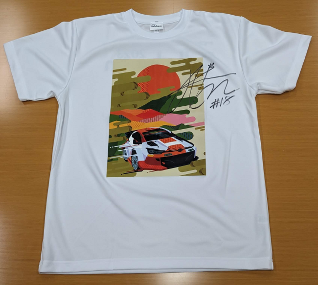 (現役ラリードライバー 勝田貴元選手のサイン入りTシャツ)