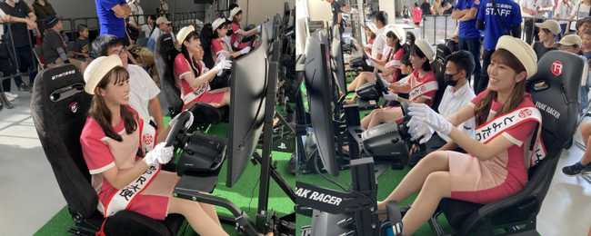 「グランツーリスモ7・コミュニティ大会」では、ラリーカーさながらのハンドルやアクセル・ブレーキペダル、ラリーチェア、モニタなどを備えた運転席コックピット(運転シミュレータ)が6台設置され、