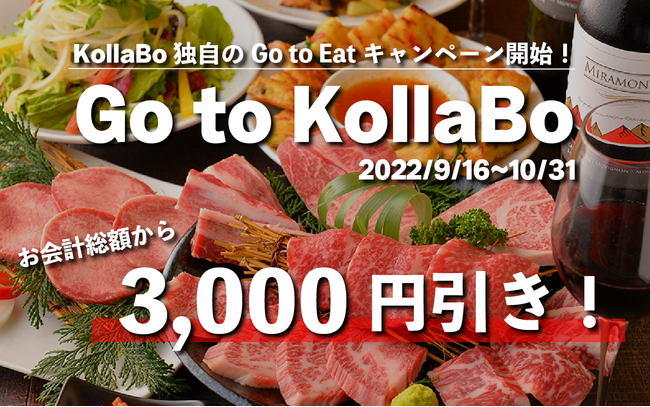 焼肉・韓国料理KollaBo(コラボ)を運営する株式会社 韓流村(本社:東京都港区、代表取締役:任 和彬)より、独自のGotoEatキャンペーン【Go to KollaBo】を開始!2022年9月16日よりクーポン配布をスタートする事をお知らせいたします。