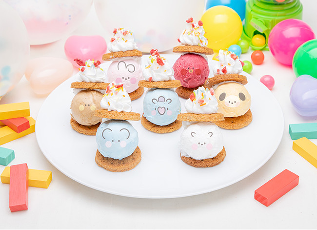 選んだデザートがBT21 mininiになってプレートにぎゅむっとあつまるよ!