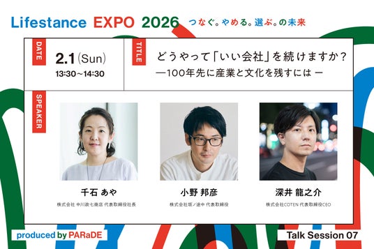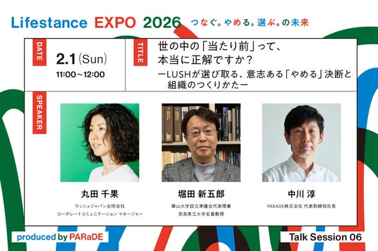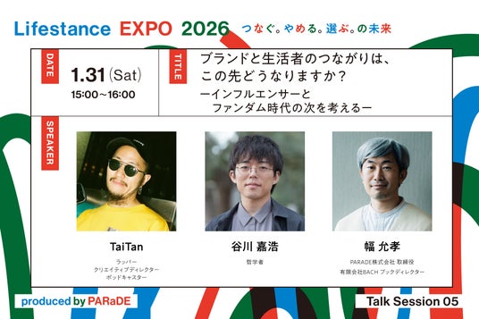 PARADE株式会社(本社:奈良県奈良市、代表取締役社長:中川 淳)は、参加者一人ひとりが自分のライフスタンス(=生き方に対する姿勢や哲学)を考え、発見し、整理し、共有する場として、ポップアップイベント「Lifestance EXPO」を2026年1月30日(金)~2月1日(日)の3日間、コクヨ株式会社の東京品川オフィス「THE CAMPUS」にて開催します。