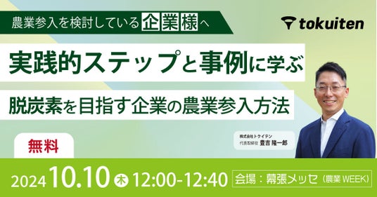 10/10(木)実践的ステップと事例に学ぶ!脱炭素を目指す企業の農業参入方法(無料セミナー)