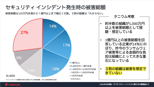 セキュリティインシデントの被害額を想定できていない企業が3割