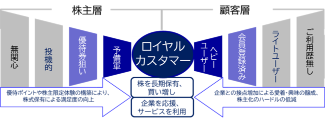 会員サービスを有する企業の顧客に、個人株主として株主優待を試みます。