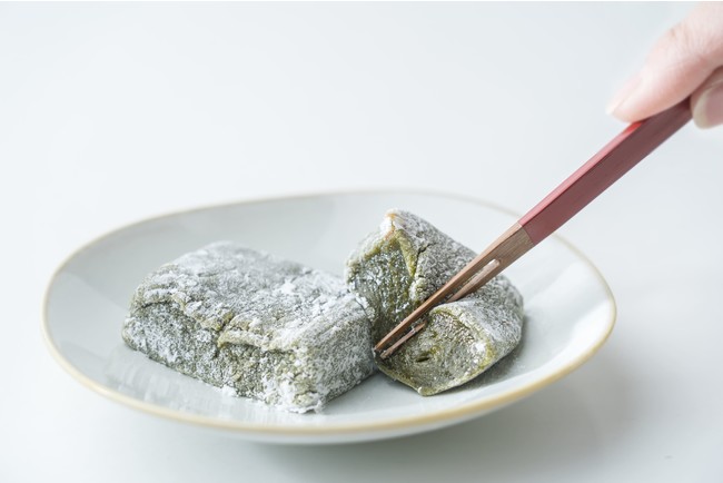 まるで赤ちゃんのほっぺのように柔らかな百年餅は国産のもち米をじっくり蒸し上げ、自然な甘みと柔らかさを引き出し、更にメレンゲを加えて作ります。ひと口頬張ると、歯を柔らかく押し返すような独特な食感と共に、宇治抹茶の風味とくるみ、黒糖の香ばしさがお口いっぱいに広がります。