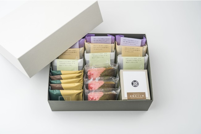 内容:ふぃなんしぇ(まっちゃ、ほうじちゃ、焦がしバター)x各3、まっちゃふぃなんしぇ 苺x3、もなかわショコラ 抹茶x3、もなかわショコラ ほうじ茶x2、茶箱 白桃ほうじ茶(5袋入)x1
