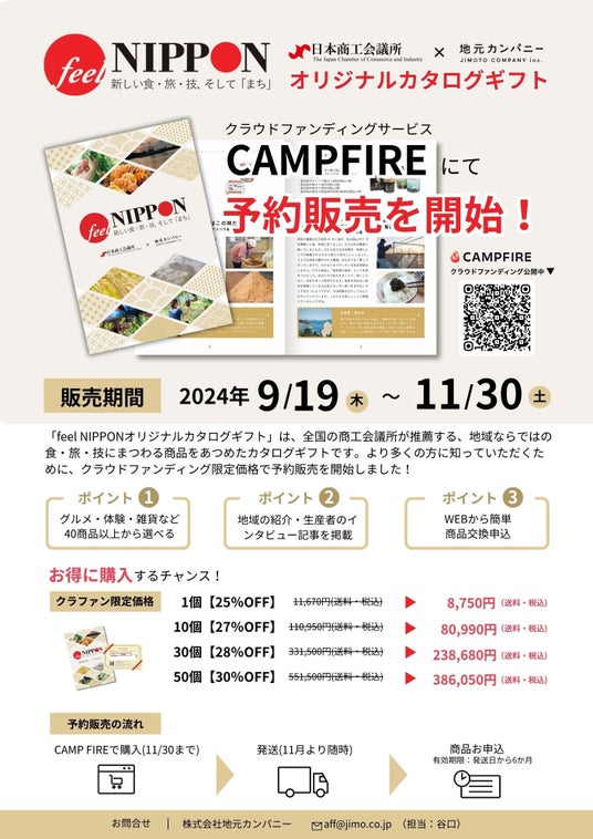 より多くの方に「feel NIPPONオリジナルカタログギフト」を手に取っていただけるよう、期間中は「クラウドファンディング限定価格」として割引販売を実施いたします。この機会に是非ご利用ください。