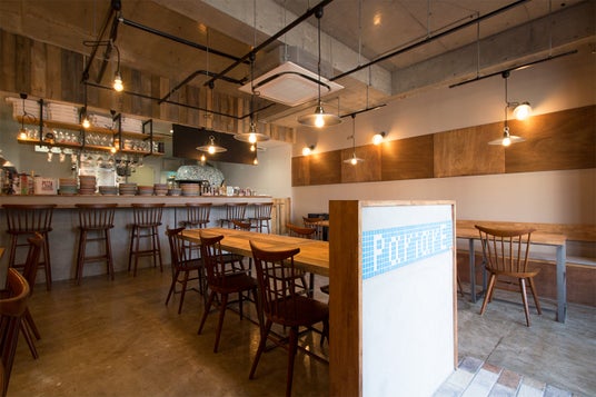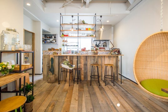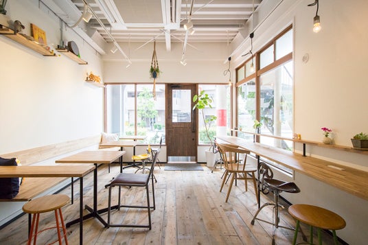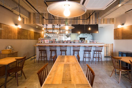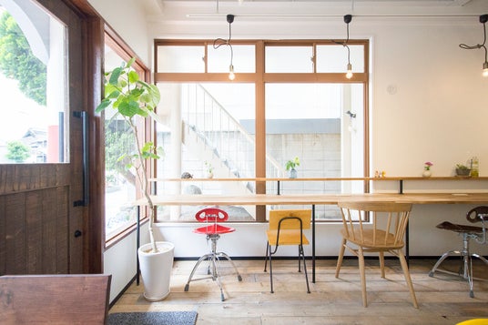 お店で使われる食器同様カラフルなタイルが、木の素材感を活かしたシンプルな空間のアクセントに。一人でも誰かと一緒でものんびりとくつろげるお店になりました。
