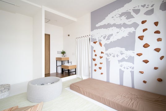 特に「家族」を表現したバオバブの木が壁面に描かれたボルダリングスペースはお店のこだわりが込められた場所。ママ達にも人気の撮影スポットです。