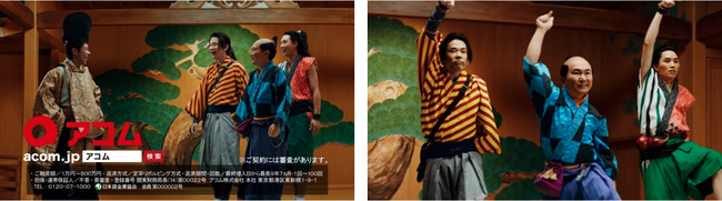 「今しかできないことを。」をコンセプトとし、架空の安土桃山時代を舞台に鈴木伸之さんが織田信長、かまいたち濱家隆一さんが豊臣 秀吉、山内健司さんが徳川家康に扮するアコムのテレビCMシリーズ「侍ビッグ3」。