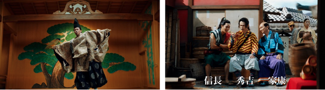 今回のテレビCMは、能楽堂でMATSU先生がキレキレに踊るところからスタートします。侍ビッグ3人が憧れの目で動画を見ていると、突然家康が2人の前に立ち上がり、キレキレのダンスを披露します。