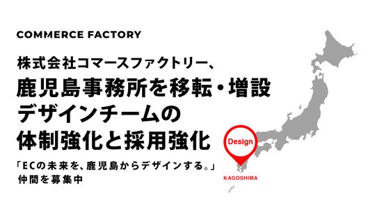 ECサイトやWebサイトのデザイン、コンサルティングを行う株式会社コマースファクトリー(本社:東京都港区、代表取締役:岡本駿平、以下「当社」)は、デザイナーの採用強化とさらなる事業拡大を目的とし、鹿児島事務所(鹿児島県鹿児島市)を鹿児島市武エリアに移転・増設いたします。