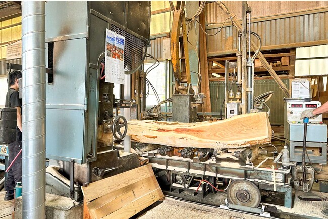 「HIDA WOOD PLANK」は、弊社社員が飛騨市へ赴き、製品のもととなる原木を選んでいます。取り都合が良い原木を選び、木材を最大限に活用できるよう現場と調整しながら生産しています。原木の選定からカットまで、全ての工程を飛騨市で行っています。