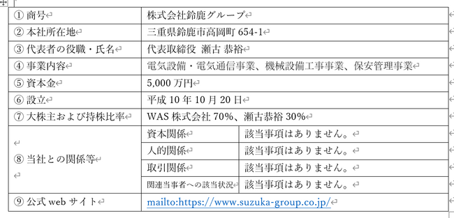 当社は、本日開催の取締役会において、株式会社鈴鹿グループ(本社:三重県鈴鹿市 代表:瀬古 恭裕