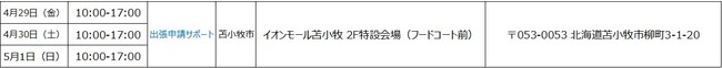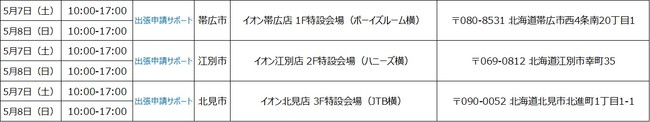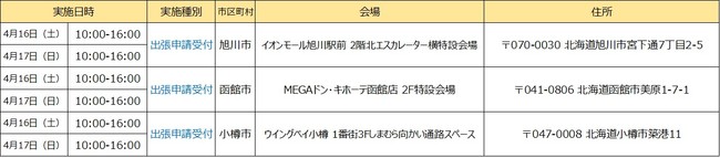 ※開催場所の調整状況や新型コロナウィルスの感染状況等により、「出張申請受付」及び「出張申請サポート」の開催を中止・延期、または実施内容が変更となる可能性がございます。