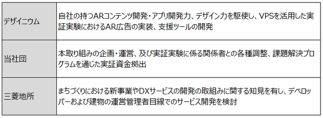本協業により、三菱地所のスマートシティの知見・ノウハウと、デザイニウムのAR領域における技術・開発力、弊社団が持つスピード感のある企画・実行力を融合させ、AR領域に新たなビジネスを創造し、市場の拡大・社会実装に貢献することを目指します。