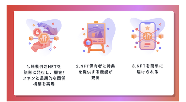 特徴1:特典付きNFTを簡単に発行し、顧客/ファンと長期的な関係構築を実現