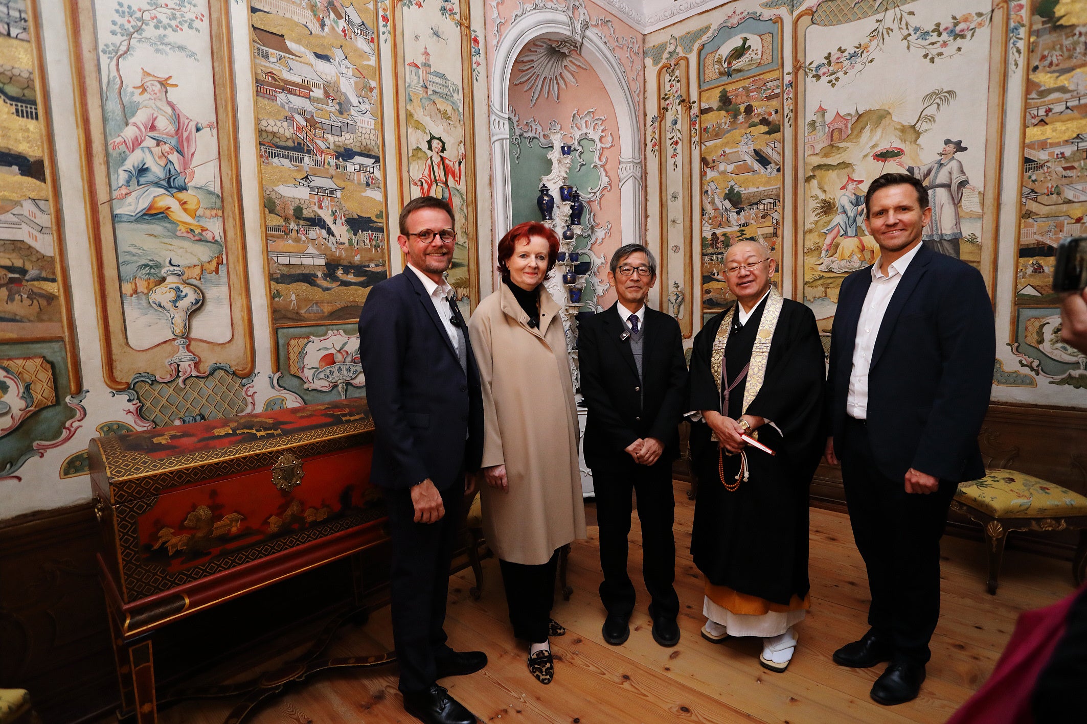 オーストリア大使館観光部が主催した本企画では、滋賀県・竹生島宝厳寺住職の峰覚雄氏、関西大学文学部教授の長谷洋一氏が、グラーツにある世界文化遺産のエッゲンベルク宮殿を訪問しました。