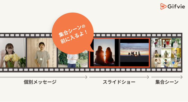 幹事もラクラク寄せ書きムービー作成サービス「Gifvie」は、これまで約5万人の方々にご利用いただき、日々機能改善を進めています。「Gifvie(ギフビー)」にこのたび、新しくスライドショー機能が加わりました。