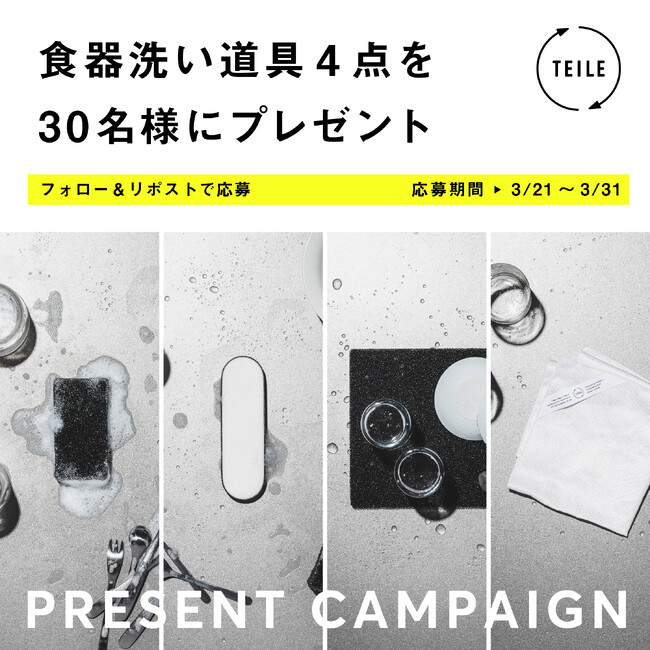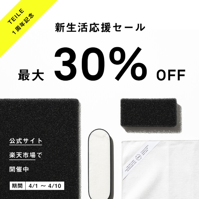 食器洗い用固形洗剤やスポンジなどのキッチン回りアイテムを製造・販売する株式会社ダイニチ・コーポレーション(東京都世田谷区;代表取締役 吉田元之、以下ダイニチ)は、作業だった食器洗いを「お手入れ」へ変える新しい洗浄用品シリーズTEILE(テイレ)が誕生して1年を迎えました。これまで購入してくださった方々への感謝の気持ちと、この春新たな生活をスタートさせる方にも向けて、新生活応援のプレゼントキャンペーンと最大30%OFFとなるセールを開催します。