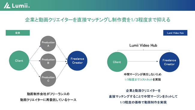 事業内容:動画・映像制作マッチングプラットフォーム「Lumii」の開発提供、広告運用、YouTubeチャンネルコンサルティング