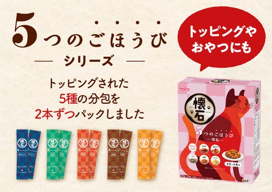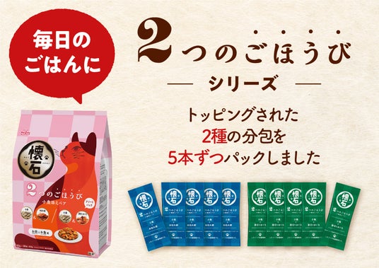 「懐石2dish」は「2つのごほうび」に、「懐石 zeppin」は「5つのごほうび」に見た目も味も大幅リニューアル!フレーバータイプと機能性タイプが選べます。