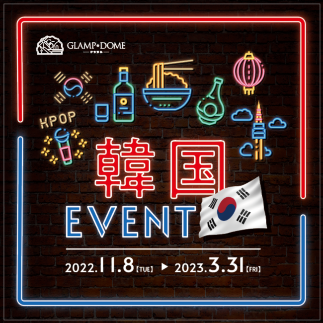 シイエスピーク株式会社(本社:大阪府大阪市中央区北浜1‐1‐14 北浜1丁目平和ビル6階 代表取締役:吉井俊貴 以下、当社)は、当社のリゾートブランド「CES RESORT」が運営するグランピング施設「グランドーム伊勢賢島」にて、11月8日(火)より【韓国イベント】がスタートします。