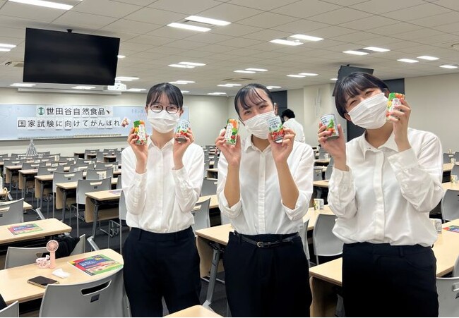 毎年、多くの医療従事者を輩出する学校法人西大和学園グループ。大和大学は看護師・保健師・助産師・理学療法士・作業療法士・言語聴覚士養成を行っています。企業の方々と協同し、学生たちに少しでも健康的で前向きに国家試験に向かって欲しいという思いから、こちらのサプライズを企画しました。世田谷自然食品様とはTwitterで親しくさせていただいており、東京からの熱きエールはきっと学生たちの励みになると信じています。