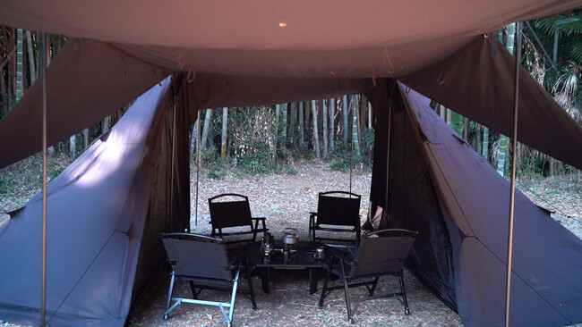 グループキャンプでもファミリーキャンプでも人数に合わせてリビングスペースを確保でき、広々と快適に過ごすことができます。