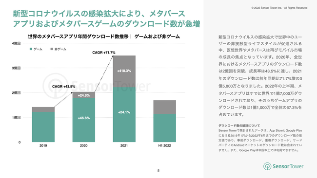 新型コロナウイルスの感染拡大により、メタバースアプリおよびメタバースゲームのダウンロード数が急増
