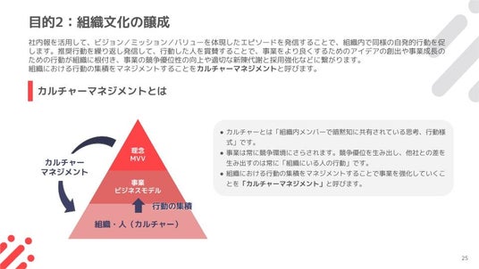 また、組織開発チームが導入後からすぐ、組織課題を解決する理想的な組織文化の醸成に向けた社内広報の戦略設計や、そのために必要な企画立案・施策の改善提案を行います。導入後の継続率は99%と高い評価をいただいております。