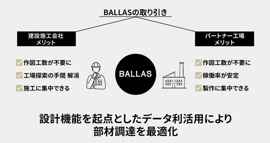 「建設業を最適化し、人々を幸せに。」をミッションに掲げ、建設部材の調達サービスを展開しています。建設業特化のプラットフォーマ―として、人手不足による産業構造の歪みに対し、持続的に最適な調達ができるサプライチェーン構築に取り組んでおります。設計機能を起点としたデータ蓄積・利活用のアプローチで、生産・調達プロセスを最適化し、建設工事会社様は「施工・工事業務に」、製作工場様は「製作業務に」集中できる仕組みを実現しています。