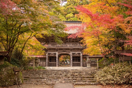 ヤマモミジなど約3000本のモミジの木があり、神社本殿への登り口の石段から社殿東側一帯の谷川沿いの美しい自然林は国指定天然記念物です。例年11月中旬から赤や黄色に色づき、美しい紅葉を見ることができます。