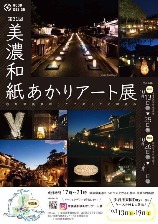 ・第1部[10/13(日)~10/25(金)]:約300点の新しい美濃和紙あかりアートと町歩きを楽しむ】