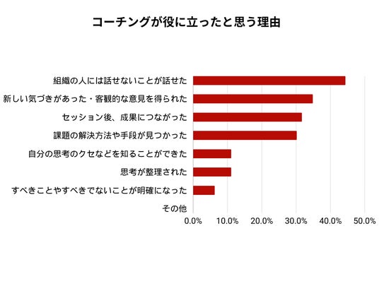 - コーチング経験者の59%が「コーチングが役に立った」と回答
