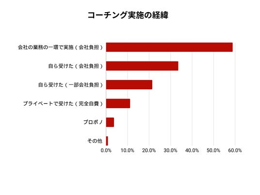 - コーチング受講のきっかけで最も多い回答が「会社の業務の一環で実施した」で59%