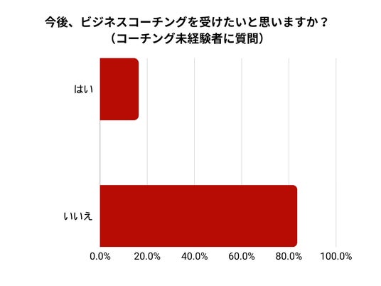 - コーチング未経験で「今後コーチングを受けたい」と回答したのは16%で、84%が「今後コーチングを受けたくない」と回答