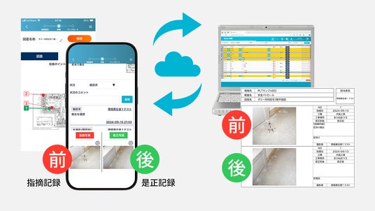 さらに、当機能はクラウドベースで提供され、是正作業を担当するメンバーにリアルタイムで情報共有されるため、即座の対応が可能です。また、検査状況は「是正記録帳票(作業指示書)」として簡単に作成できます。本機能の標準装備により、現場での手間を省き、作業のスピードアップと正確な記録管理を促進します。