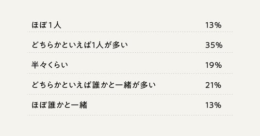 休日の外出で「おひとり」で出かける割合