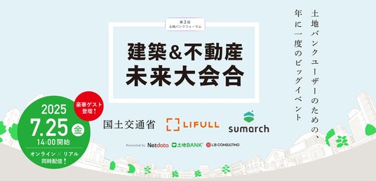 全国1,100社以上の住宅・不動産会社が導入するMAP型営業支援ツール「土地バンク」を提供する株式会社ネットデータ(本社:岡山県岡山市、代表取締役:松岡 明)は、2025年7月25日(金)14:00より、土地バンク主催の年次総会イベント「第3回 土地バンクフォーラム〈建築&不動産未来大会合〉」を開催いたします。