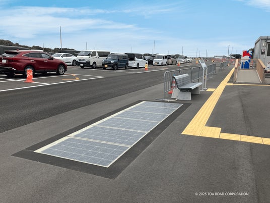 「Wattway」は、フランスのColas 社とフランスの国立太陽エネルギー技術研究所(CEA-INES)が共同して開発した太陽光発電舗装システムです。パネル表面はすべり止めが施され、車両や歩行者の通行を妨げることなく、道路空間を活用して再生可能エネルギーを創出できる革新的な技術です。パネルを路面に設置することで、周囲の景観を損なわずに発電設備を設けられます。