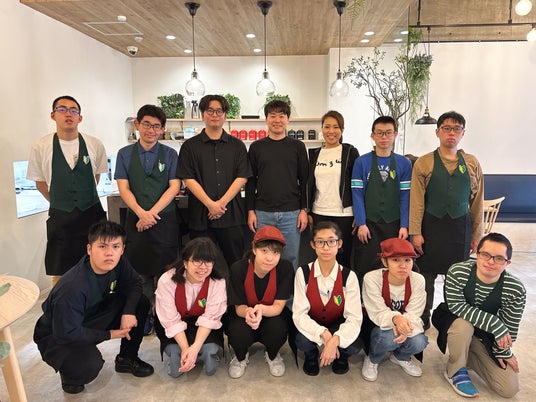 特定非営利活動法人 障がい者みらい創造センター 理事長 竹内亜沙美氏と店舗スタッフの皆さまとの記念の一枚