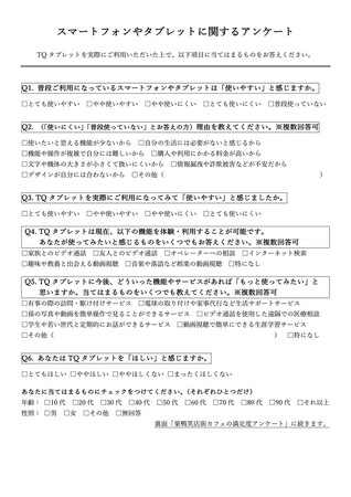(補足)「スマートフォンやタブレットに関するアンケート」調査用紙