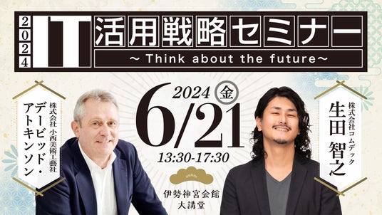 「IT活用戦略セミナー2024」では株式会社小西美術工藝社の代表取締役社長 デービッド・アトキンソン氏、株式会社コムデックの代表 生田智之が登壇します。
