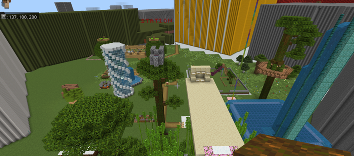 こどもたちに大人気の「マインクラフト」を教育ツールとして活用し、SDGsや地域課題をテーマにした「街づくり」に取り組みます。 「実際の府中駅前」のデータをベースに、バーチャル空間での建築作業や、実際に街を歩きデータを収集することを通じて、空間認識能力や論理的思考を養うだけでなく、「どのような街が住みやすいか?」「持続可能な社会とは?」といった正解のない問いに向き合う探究プログラムです。デジタルネイティブな感性を活かし、楽しみながら実際の自分たちの街を作り、社会や環境について考えるきっかけをつくります。