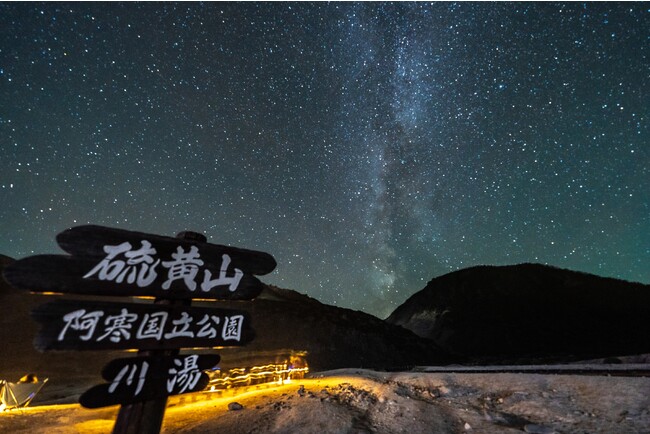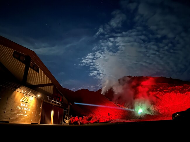 普段は昼にしか見れない硫黄山を、特別な光の演出で、噴気孔から立ち上る煙と大地の創り出す絶景と共に楽しむ日本初の活火山ライトアッププログラム。また同時に「闇と星空」も感じることができる、夜のフィールドミュージアムとなっています。