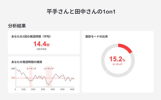 1on1の質を上げるために見るべきところ、それは「話し方・聴き方」です。「話す内容」ではありません。Ando-sanは、会話行動を分析し、1on1の質向上に本当に必要な情報を厳選します。そのため、部下の成長を支援する1on1を最短で実現できるのです。