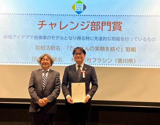 株式会社フクシン(〒769-2705 香川県東かがわ市白鳥78-1 電話0879-25-2285 代表取締役 福崎二郎)は、第3回ローカルSDGs四国表彰に応募し、厳正な審査の結果「チャレンジ部門賞」を受賞しました。